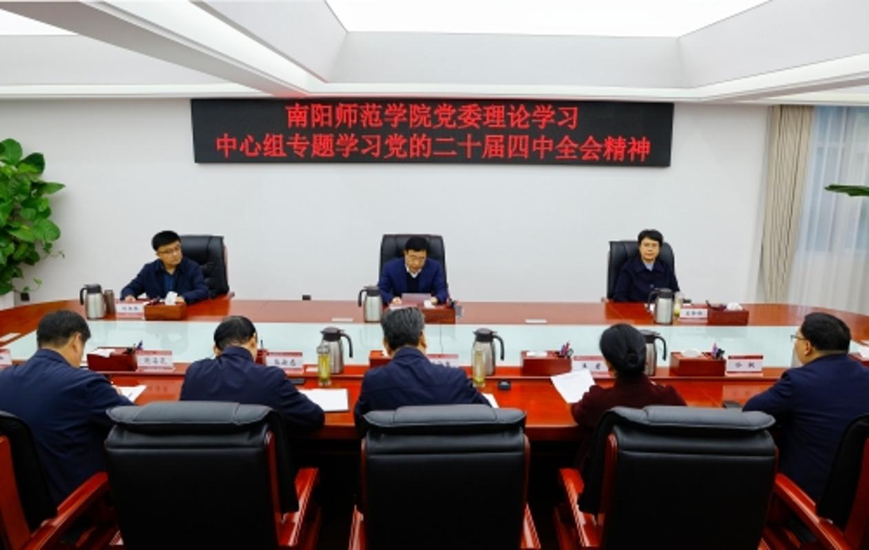 11月14日上午,南阳师范学院党委理论学习中心组在办公大楼三楼会议室举行集体学习会,专题学习党的二十届四中全会精神。校党委书记张宝锋主持学习并讲话。会上,中心组成员集体观看了《中国共产党第二十届中央委员会第四次全体会议公报》的视频,并结合各自学习体会和分管工作实际,进行了深入研讨交流。会议认为,习近平总书记在全会上发表的重要讲话高屋建瓴、精辟深邃、内涵丰富,具有极强的政治性、时代性、战略性、指导性,为新征程上推进中国式现代...