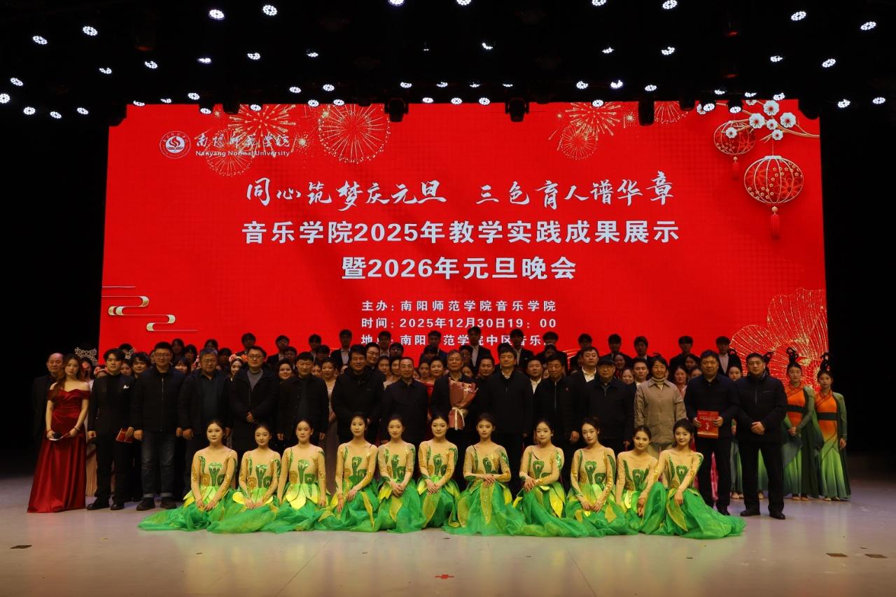 12月30日晚,音乐学院在中区演播厅成功举办“同心筑梦庆元旦三色育人谱华章”——2025年教学实践成果展示暨2026年元旦晚会。校纪委书记、监察专员刘守勇、副校长刘金江出席,内乡县衙博物馆、南阳天鹅湖山乡剧院、我校人事处、学生处、社科处、团委、历史学院、化学与制药工程学院、水资源与现代农业学院、教育科学学院、物理与电子工程学院、地理科学与旅游学院、美术与设计学院、公共外语教学部相关负责...