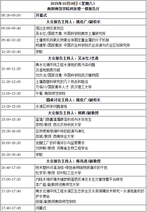 会议地点:南阳师范学院科技楼一楼报告厅