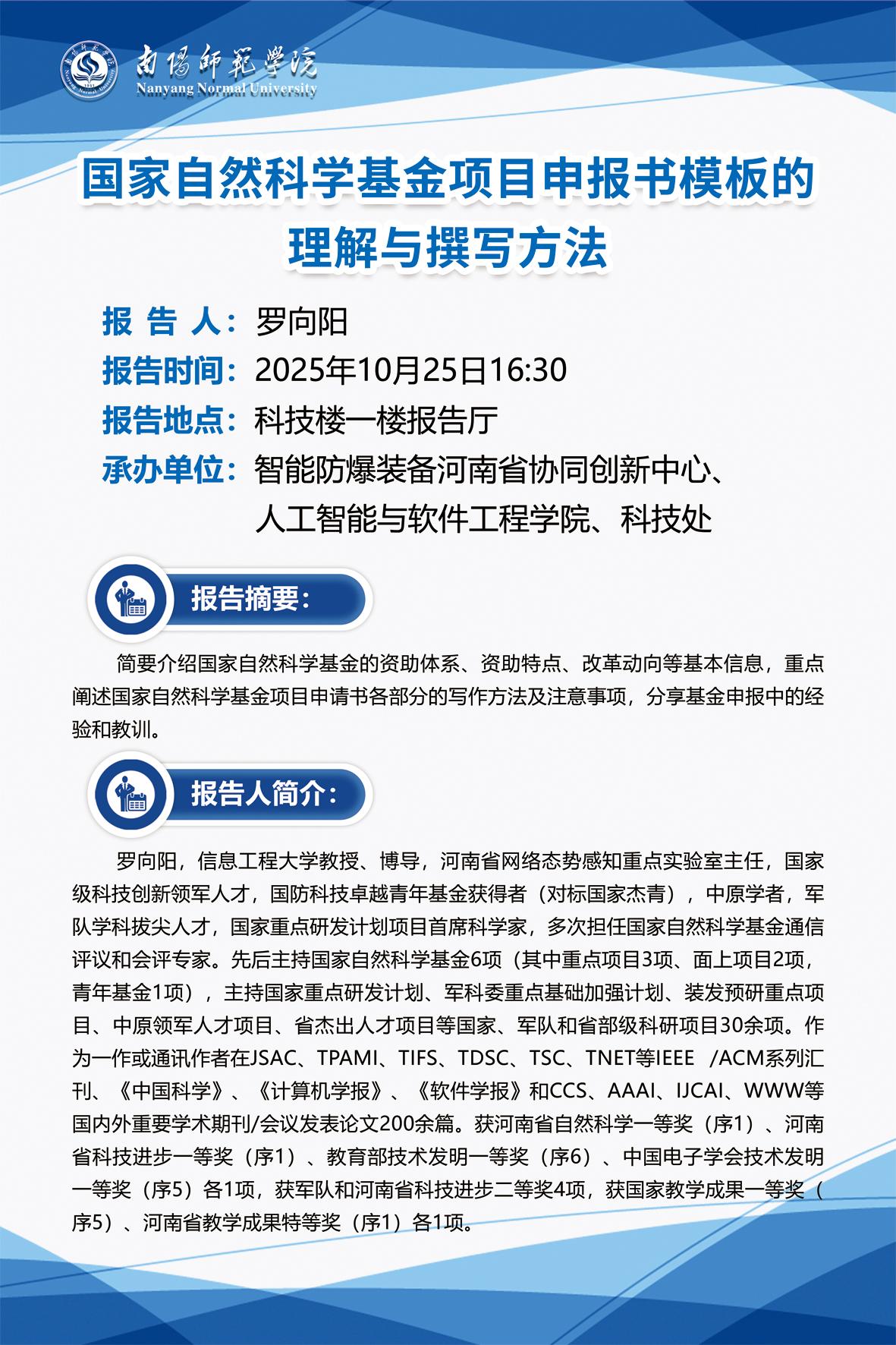 上一条:关于组织申报2026年度南阳师范学院国家自然科学基金培育基金项目的通知