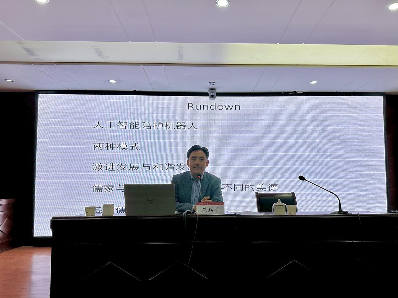 本网讯(丁士瑞/文 马黎瑛子/图)2025年10月14日下午,香港城市大学范瑞平教授应马克思主义学院邀请,在办公楼一楼东会议室作题为《人工智能陪护机器人的伦理问题》的学术报告。报告由马克思主义学院院长靳安广主持,马克思主义学院全体研究生与会。