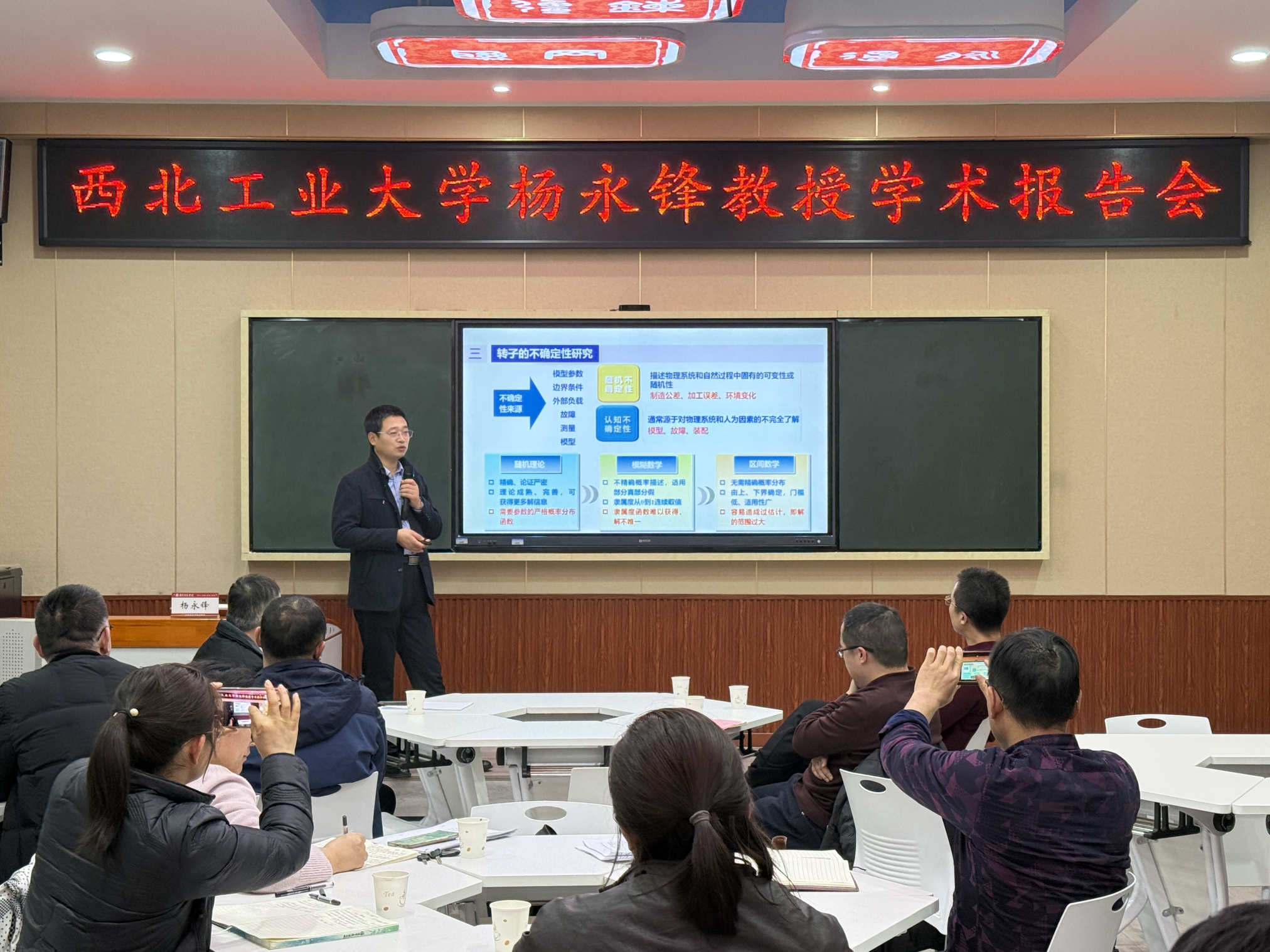 韩勤锴以“滚动轴承状态智能无线监测研究”为题,系统阐释了新型混合摩擦变磁阻发电机技术的原理与进展,为装备状态监测提供了创新性解决方案。杨永锋作了题为“转子振动的不确定性和能量特性研究”的报告,深入剖析了转子系统的不确定性建模方法,并揭示了其振动能量传递规律。两位专家分别从智能监测的技术创新与理论深化角度,展示了该领域的前沿进展。