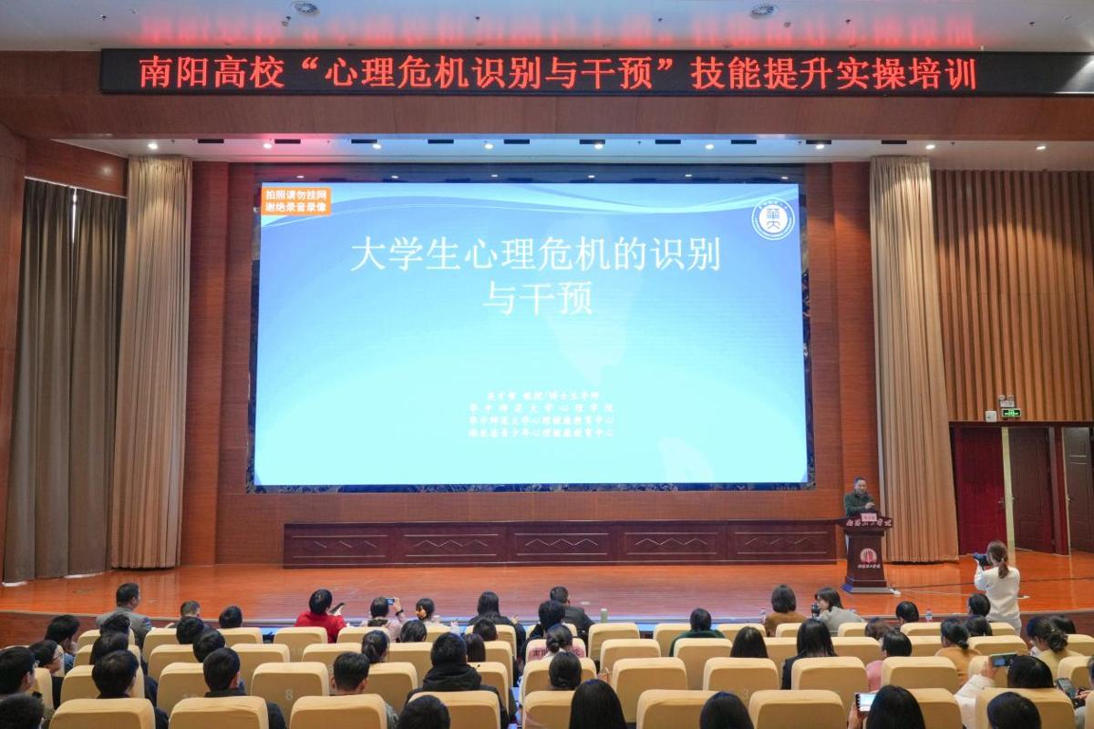本网讯(通讯员 孙培蕾 图/文)10月31日,由南阳师范学院、南阳理工学院、南阳农业职业学院主办的南阳高校“心理危机识别与干预”技能提升实操培训会在南阳理工学院第三报告厅举行。培训会由华中师范大学心理学院吴才智教授主讲,我校二级学院党委副书记、辅导员以及专兼职心理咨询师参加。