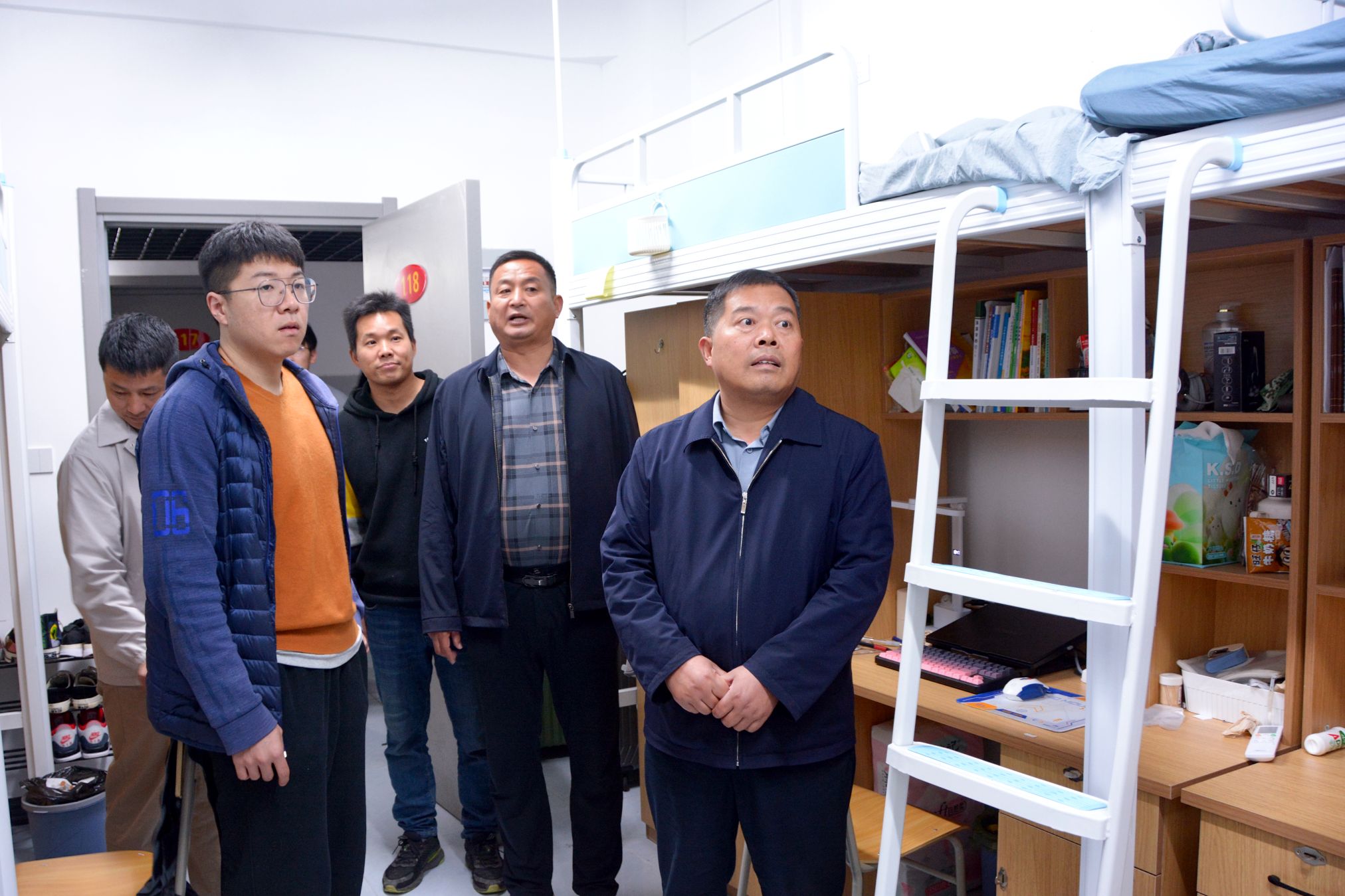 吴春刚一行先后前往学生公寓、食堂、实验室等人员密集及风险关键场所:在学生公寓,重点检查电路老化、违规用电等隐患,叮嘱宿管人员加强日常巡查频次;在食堂,深入后厨操作间、食材储存区,仔细核查食品原料溯源、卫生消杀记录及消防设施配备情况,要求严格落实食品安全管理制度;在实验室,详细查看实验废料分类存放、废水处理流程,强调规范操作流程,杜绝安全事故发生。