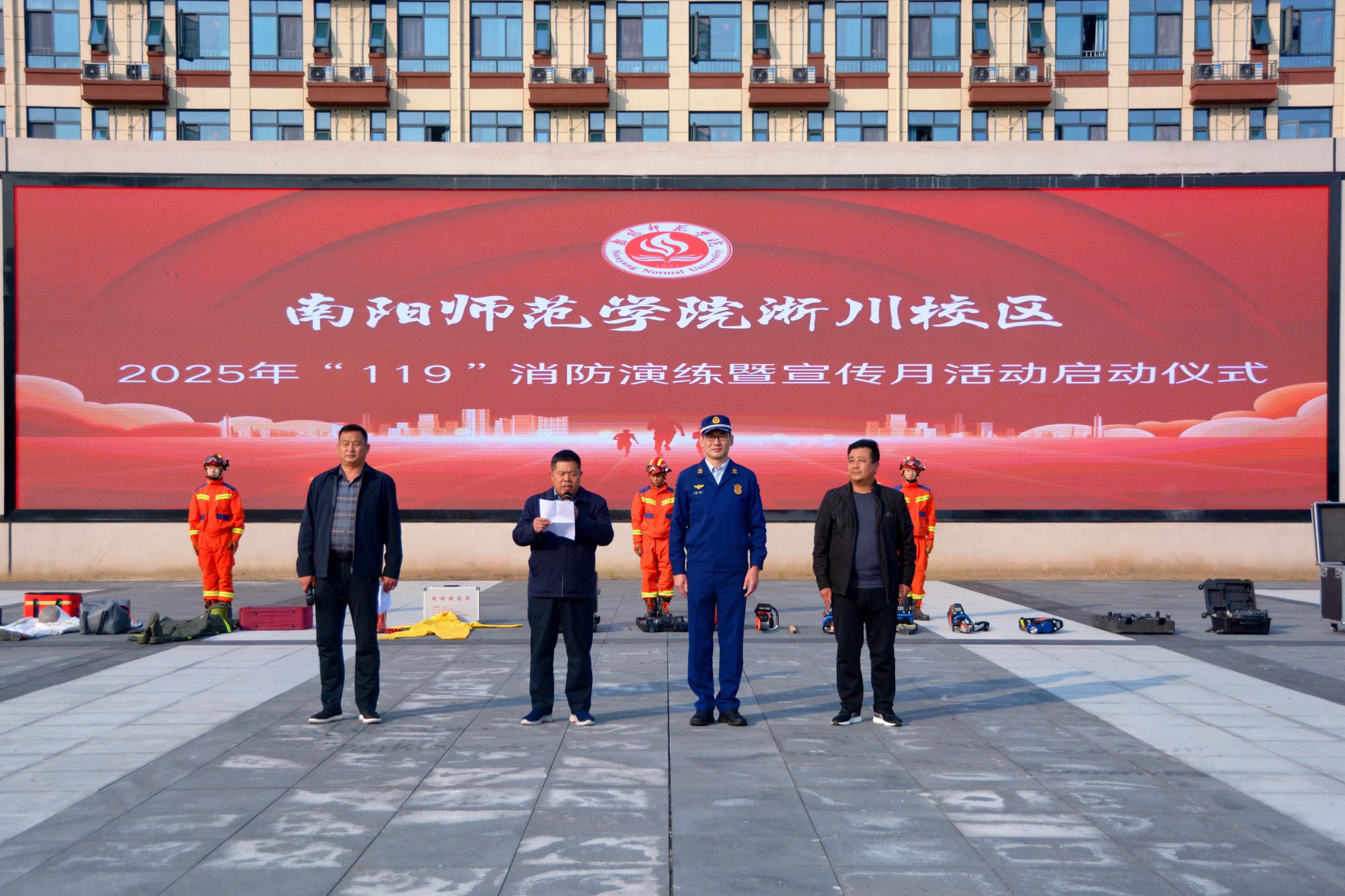 本网讯(通讯员 赵峥 图/文)在第34个全国消防日来临之际,11月5日下午我校淅川校区联合淅川县消防救援大队开展2025年“119”消防宣传月启动仪式暨灭火应急实战演练,校区消防安全重点单位、后勤安全工作负责人、各学院安全工作负责人、重点部位、重点岗位责任人及师生代表参加。活动由丹水书院书记、院长张贺龙主持。校区党工委副书记、管委会副主任吴春刚致辞并宣布活动启动。