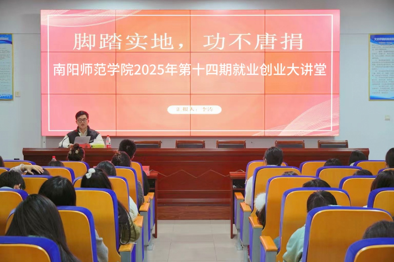 本网讯(秦婧妤 何雨卓/文 张乔露/图)为了更好地引导学生规划就业方向,搭建在校生与职业选择的沟通桥梁,11月27日,由创新创业学院主办、文学院承办的第十四期就业创业大讲堂在逸夫楼S305会议室举办。本次讲堂由唐河县纪委工作人员、我校2024届学子李涛作分享。文学院部分学生代表参加。