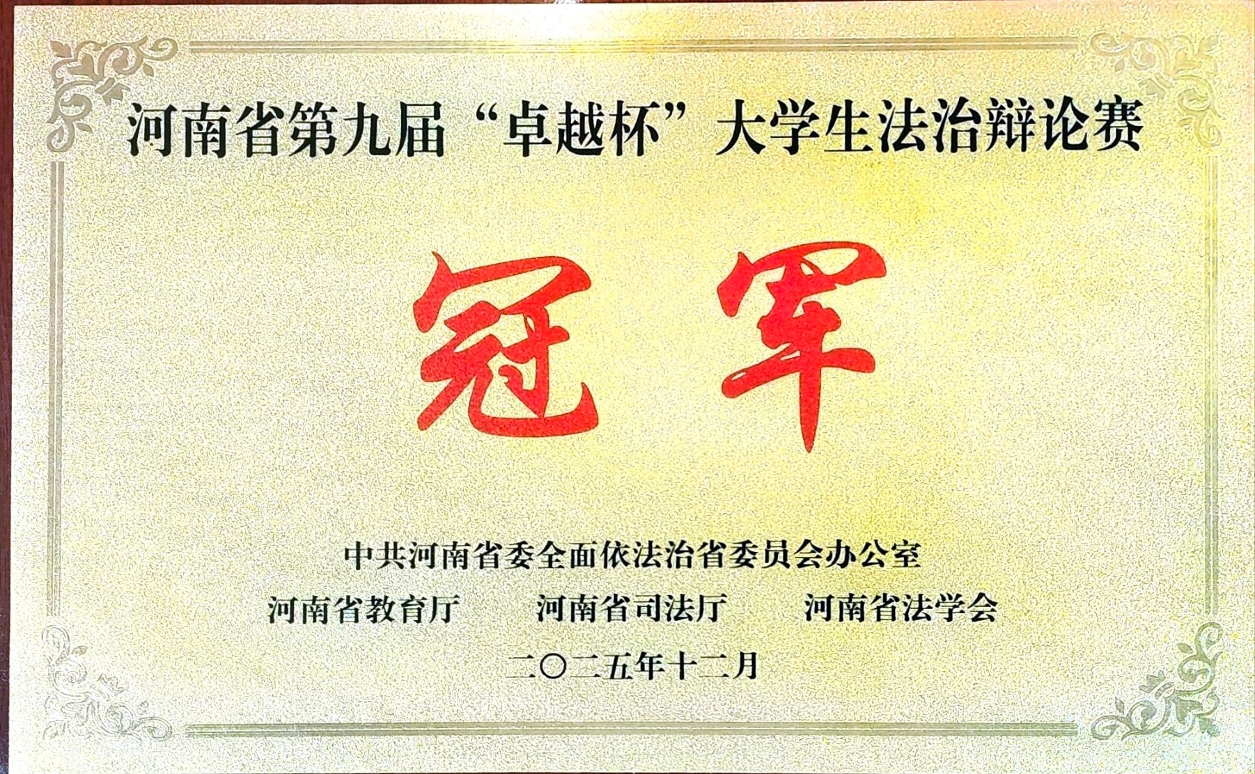 本网讯(通讯员 郑盈盈)12月1日,在第十二个国家宪法日到来之际,由中共河南省委全面依法治省委员会办公室、河南省教育厅、河南省司法厅、河南省法学会联合主办,南阳师范学院承办的2025年省“宪法宣传周”启动仪式暨第九届“卓越杯”大学生法治辩论赛决赛在郑州举行,我校代表队喜获冠军。