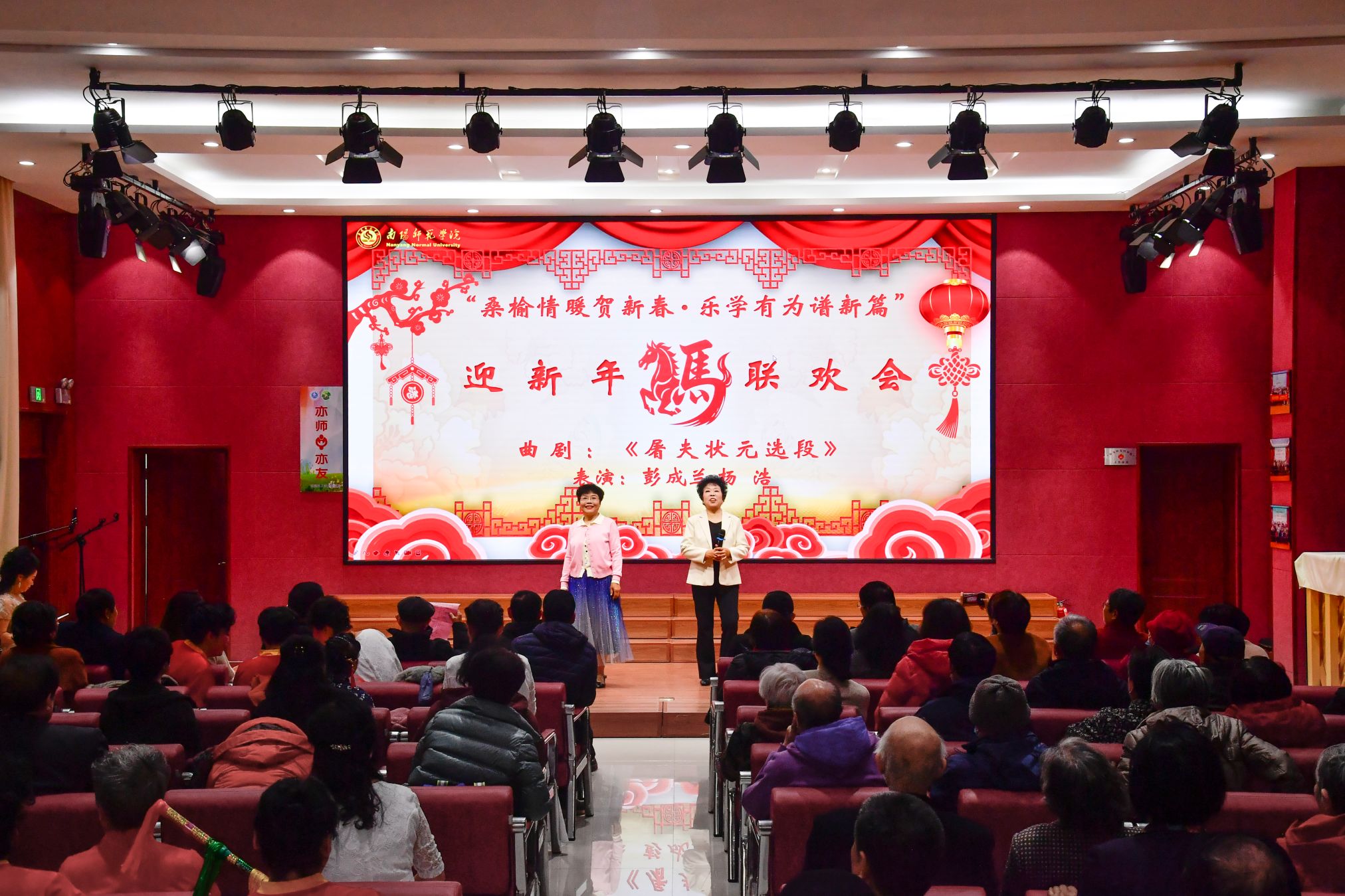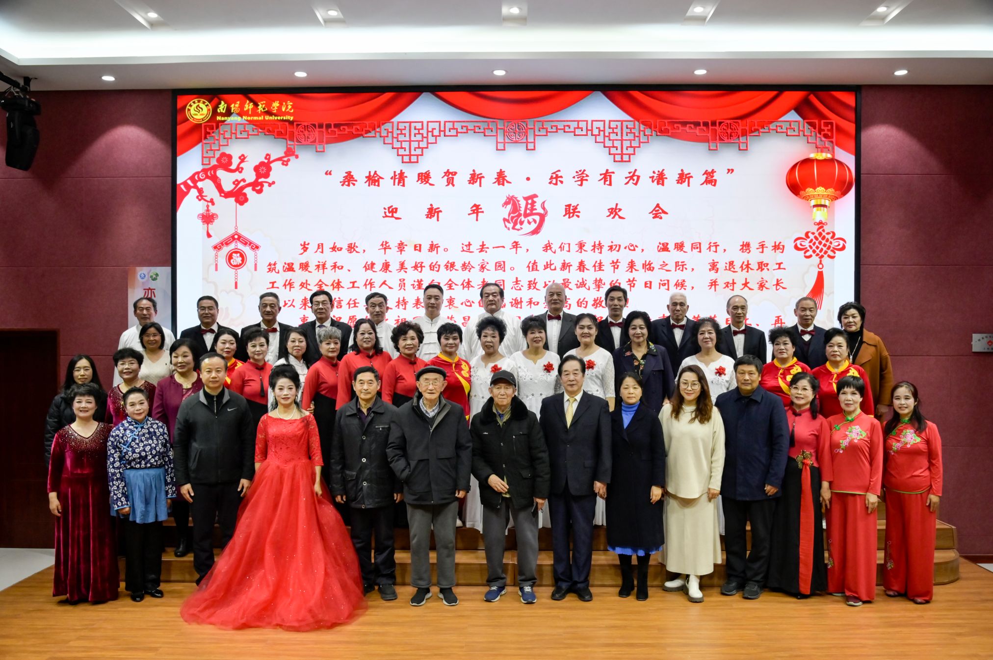 本网讯(马春苹/文 闫丽颖 张家好/图)12月19日,离退休职工工作处举办“桑榆情暖贺新春乐学有为谱新篇”迎新年联欢会,老领导、老同志们欢聚一堂,共赏精彩演出,喜迎新春到来。