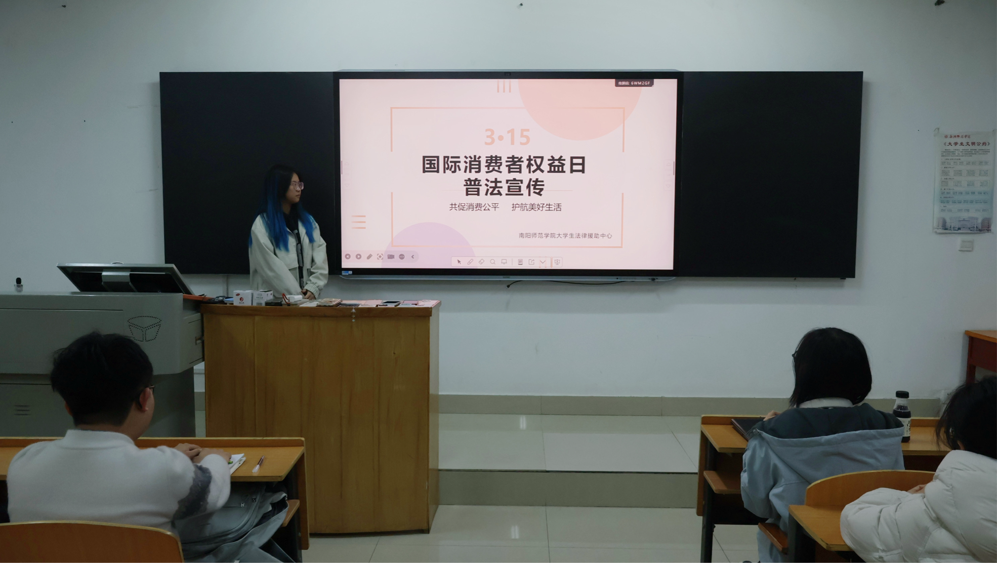 当晚,志愿者走进人工智能学院,聚焦校园消费、网络购物、权益保护等热点内容,用鲜活的案例和通俗的语言,为同学们带来了一场实用的法律课堂,进一步强化了同学们的依法维权意识。