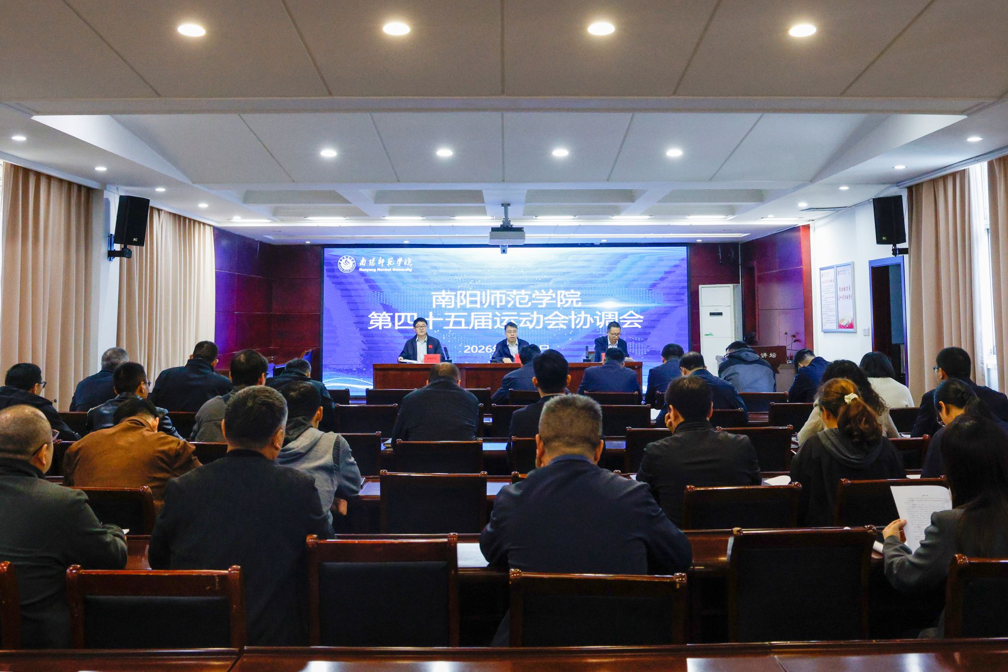 会议就运动会筹备工作提出三点要求。一要提高政治站位,强化责任担当。充分认识校运会是展示学校育人成果、凝聚师生力量的重要平台。二要坚守安全底线,筑牢保障防线。将师生安全放在首位,全面排查风险隐患,完善应急预案,做好健康监测与应急处置,杜绝安全事故发生。三要加强协同联动,凝聚工作合力。树立“全校一盘棋”思想,以务实作风、高效举措,共同办好一届安全、有序、精彩、文明的体育盛会。