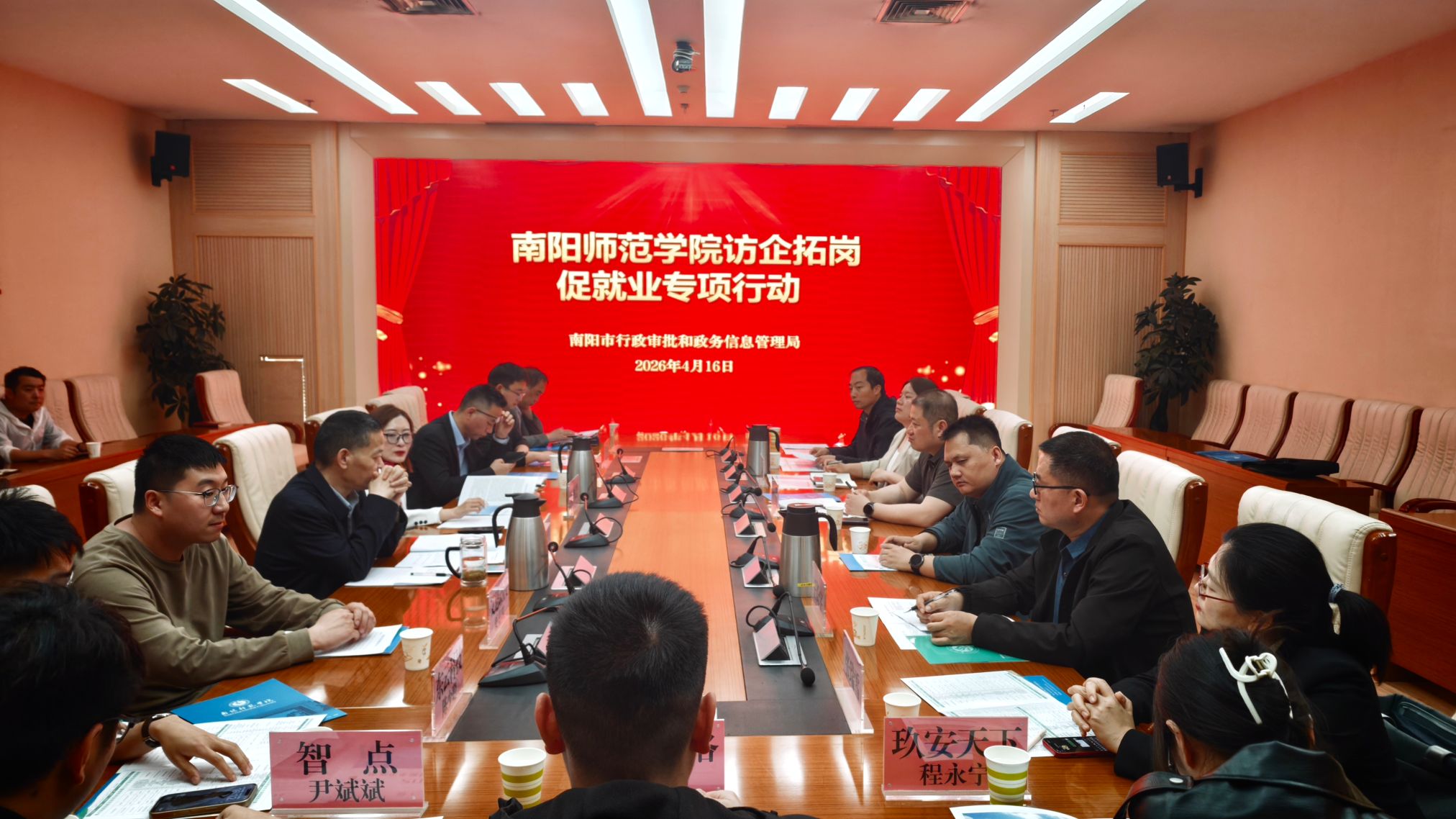 本网讯(通讯员 闫沛喆 图/文)4月16日,创新创业学院组织文学院、人工智能学院、软件工程学院、美术与艺术设计学院赴南阳市行政审批和政务信息管理局、南阳市政务大数据中心开展访企拓岗促就业专项行动。南阳万鑫邦数据处理有限公司、玖安天下(南阳)科技有限公司、河南省东云科技有限公司等8家企业在南阳市行政审批和政务信息管理局会议室进行校企座谈。