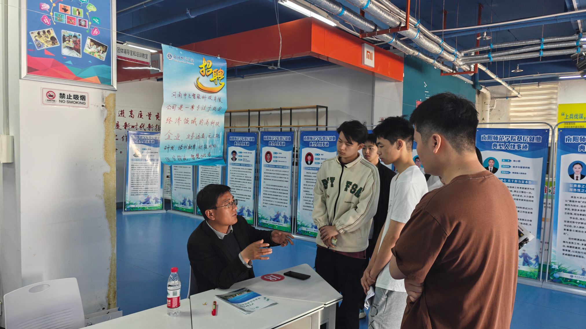 双选会现场由大学生就业创业指导室提供就业政策宣讲,为毕业生提供面试技巧指导、职业规划答疑等服务。