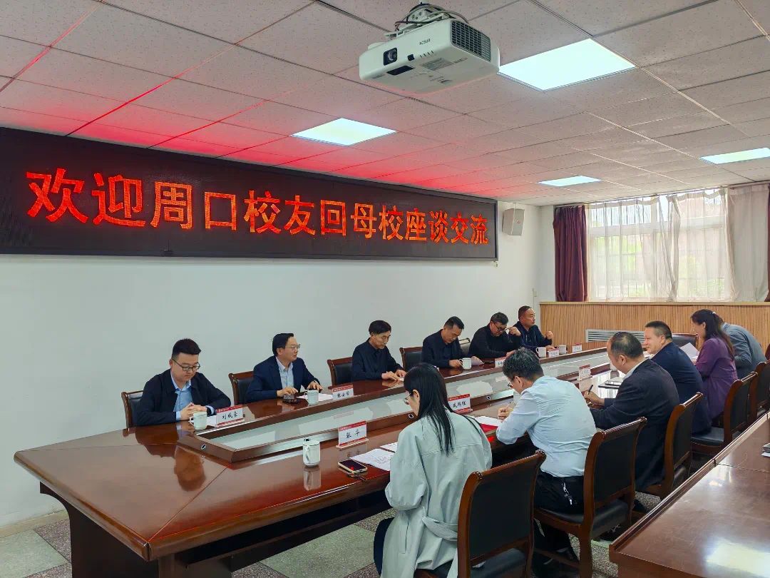 本网讯(吴杨 李梦西/文 吴杨/图)4月17日下午,我校周口校友会一行6人回母校座谈交流。座谈交流会在办公大楼一楼西会议室举行,教务处、美术与艺术设计学院、地理科学与旅游学院、外国语学院等相关学院和部门负责人参加活动。座谈会由校友工作办公室副主任臧建磊主持,校友工作办公室全体人员参会。