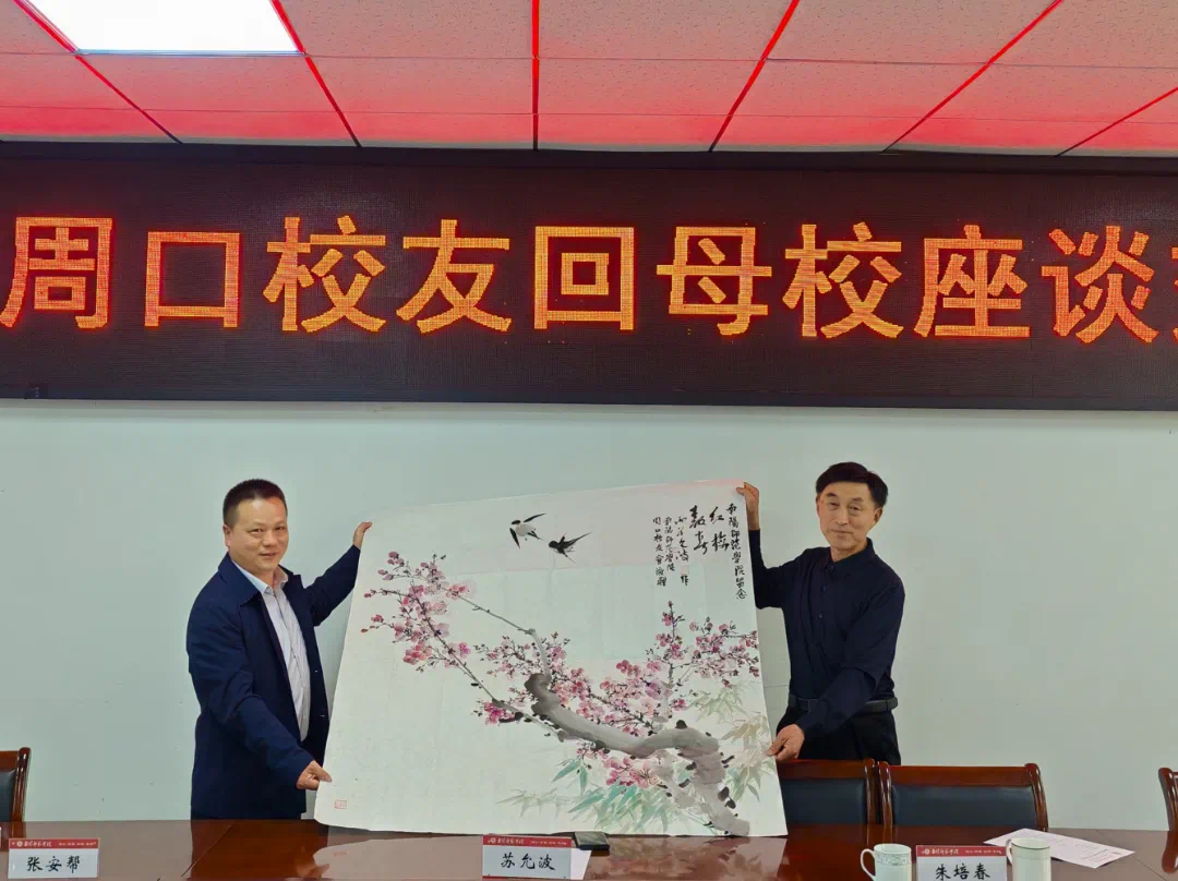 座谈期间,苏允波会长首先代表周口校友会向学校捐赠国画《红梅报春》,随后又代表个人向美术与艺术设计学院捐赠画作,表达对母校和学院的美好祝愿。