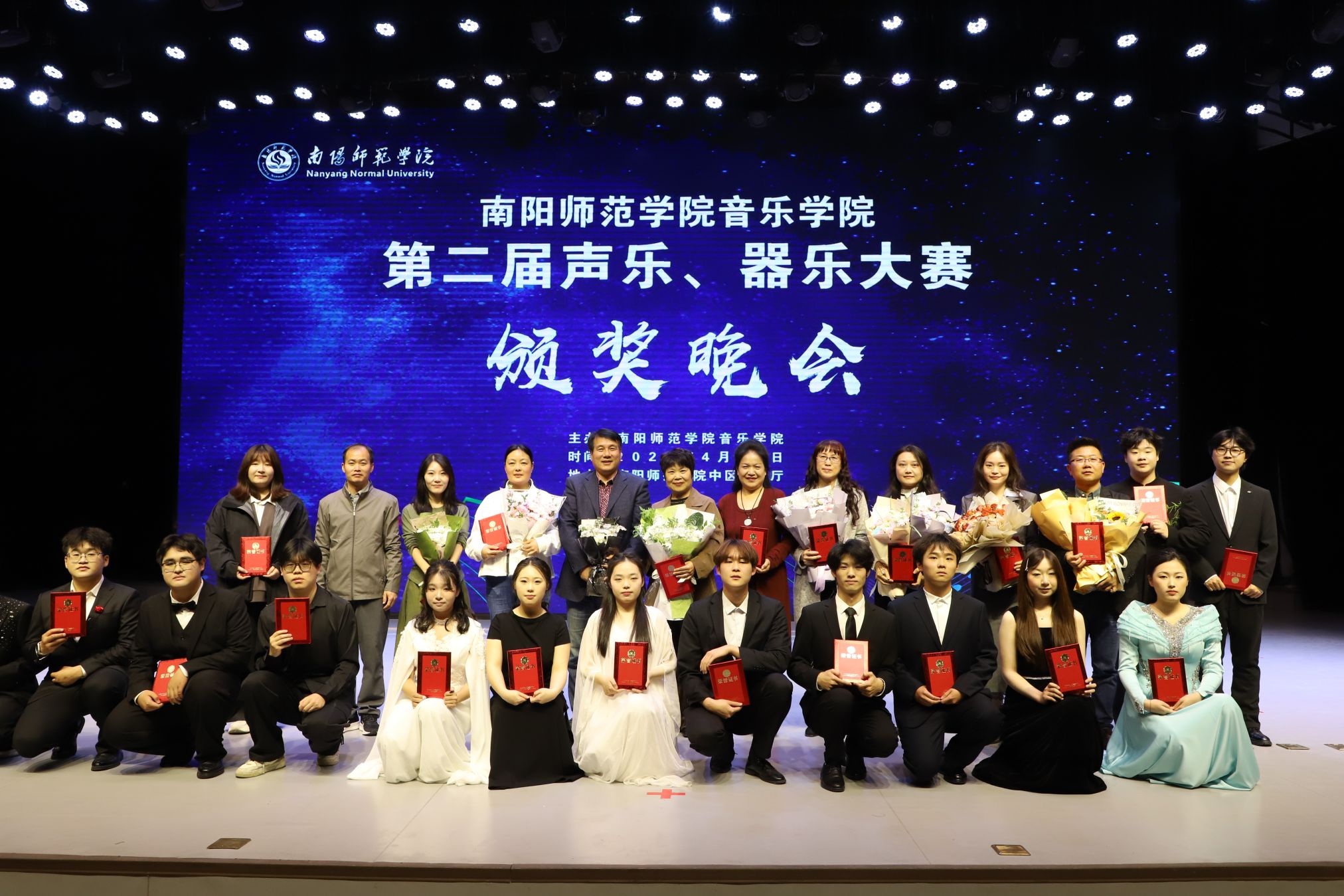 本网讯(张塘林/文 马如意/图)4月23日晚,音乐学院第二届声乐、器乐大赛颁奖晚会在音乐厅举行。音乐学院领导班子参加,并为获奖选手和优秀指导教师颁奖。音乐学院师生到场观看。