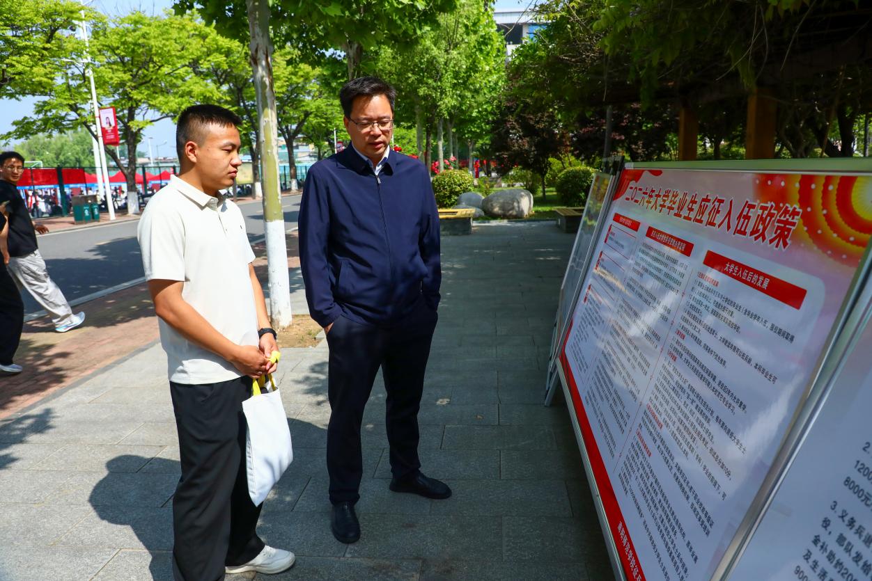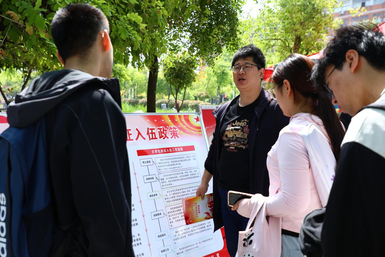 本网讯(朱思宇/文 刘侗雨 陈奕霖/图)为落实2026年征兵工作部署,拓宽征兵宣传覆盖面,进一步激发大学生参军入伍热情,鼓励我校学子携笔从戎,4月25日,我校人民武装部走进2026届毕业生春季校园双选会现场,进行应征入伍政策宣传,为广大毕业生答疑解惑。