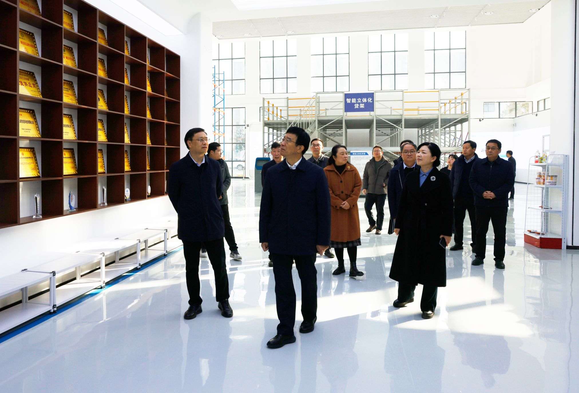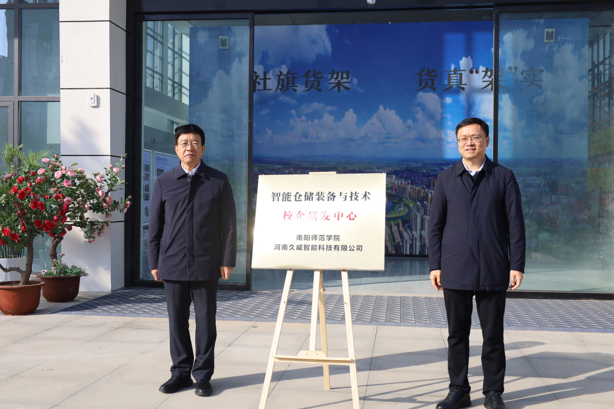 张宝锋一行先后来到河南久威智能科技有限公司、社旗县货架产业园、南阳文鑫工艺品有限公司实地考察、听取汇报,详细了解产业现状、市场需求及技术瓶颈,并为“智能仓储装备与技术”与“仿真花艺与数字场景应用”两个校企研发中心揭牌。