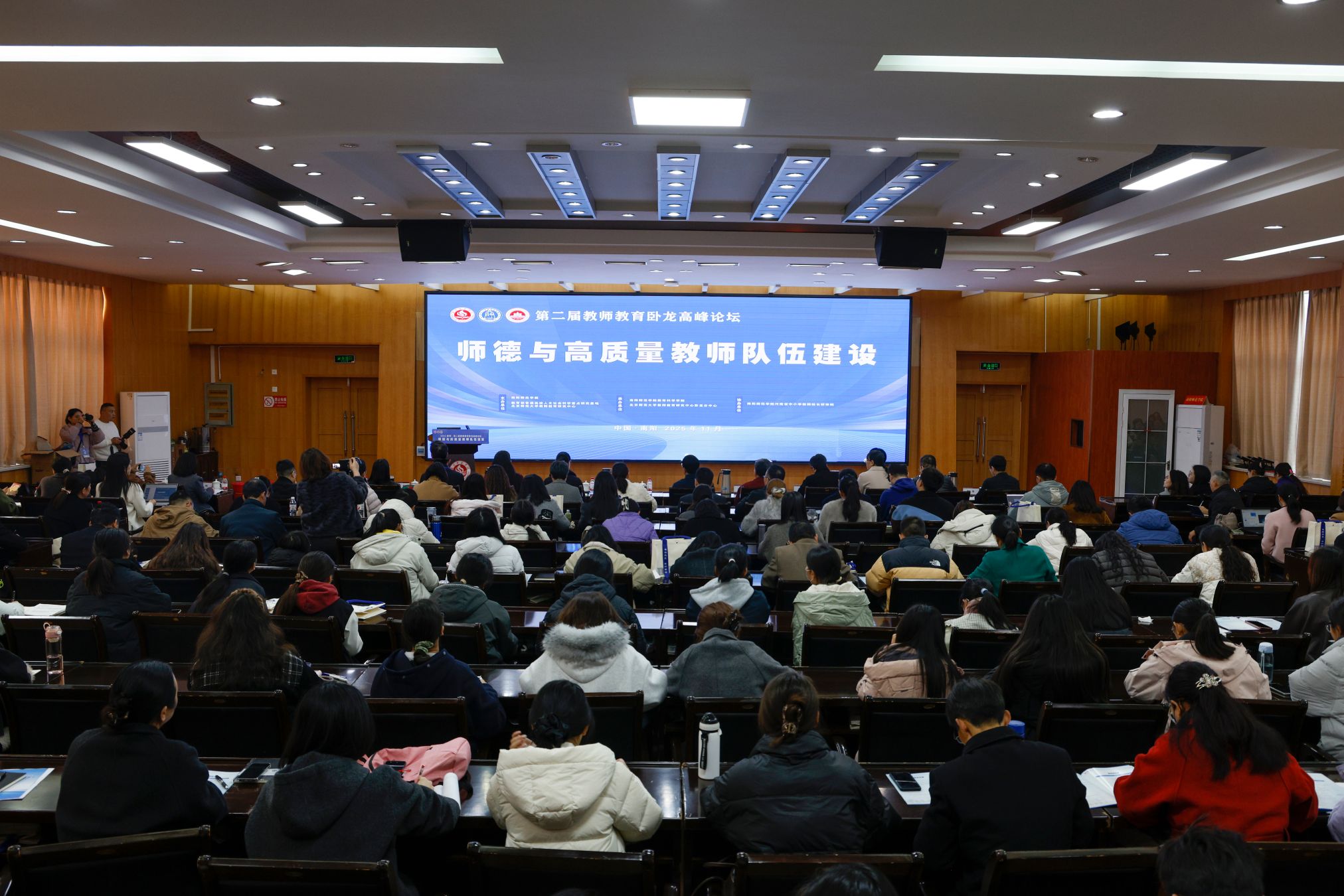 本网讯(张香敏 卢溥 宋施雨/文王梁仪/图)11月30日,由南阳师范学院与教育部普通高校人文社会科学重点研究基地北京师范大学教师教育研究中心主办,南阳师范学院教育科学学院及北京师范大学教师教育研究中心卧龙分中心承办,河南省中小学教师校长研修院协办的第二届教师教育卧龙高峰论坛在南阳师范学院召开。本次会议以“师德与高质量教师队伍建设”为主题,南阳师范学院党委书记张宝锋,教育部普通高校人文社会科学重点研究基地北京师范大学教师教育研究中心主任、北京师范大学教育学部部长朱旭东出席会议并作开幕致辞,南阳师范学院副院长姚伦广主持开幕式。来自北京师范大学、华中师范大学、陕西师范大学、广州大学、北京教育学院、郑州大学、河南大学等全国多所高校的专家学者、河南省中小学教师校长研修院研修教师、在校研究生等参加论坛,共同探讨师德和高质量教师队伍建设。