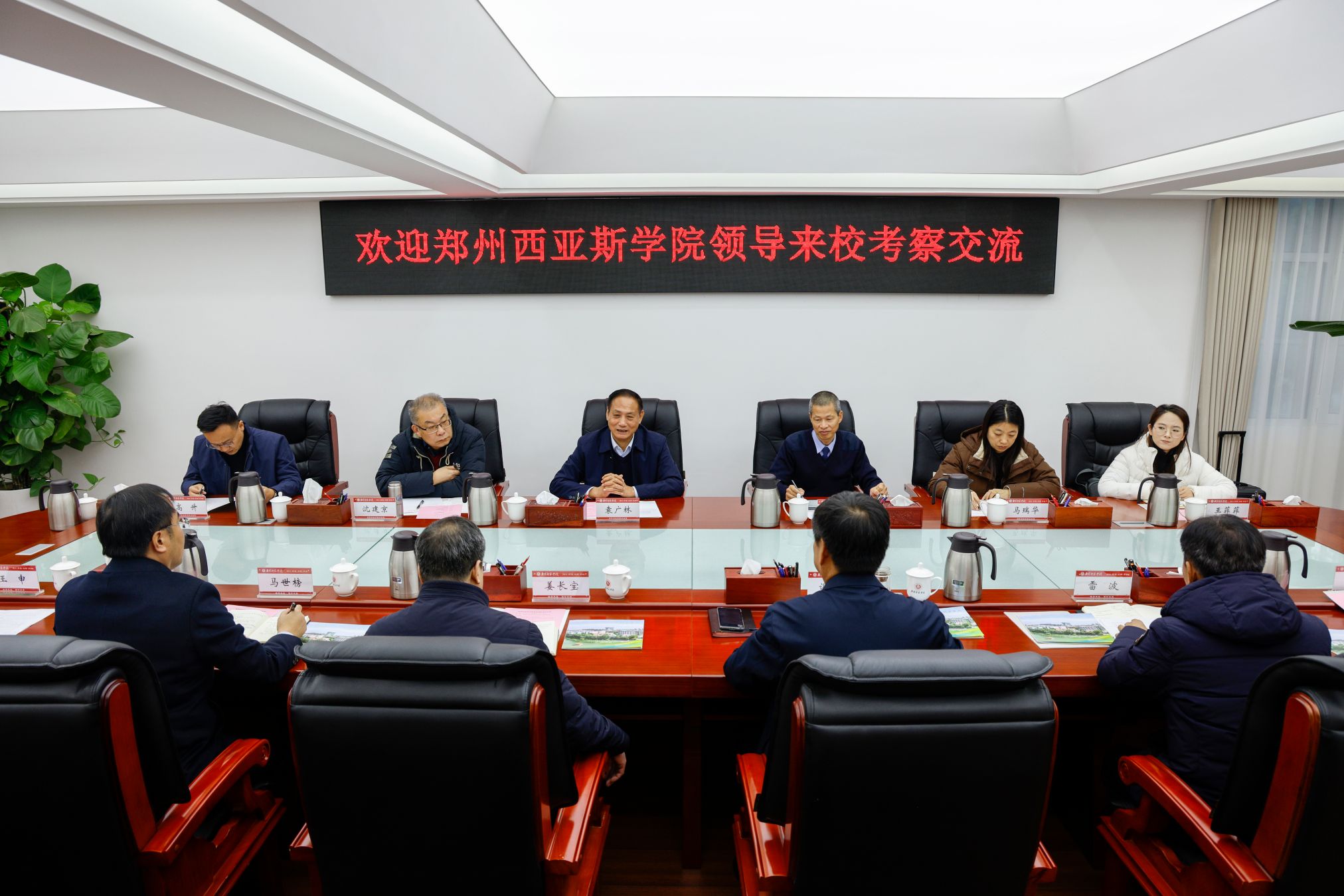 袁广林介绍了西亚斯学院“三育三制”特色育人模式、国际化建设和科学研究等方面的基本情况。他表示,南阳师范学院在学科建设和研究生培养方面积累了丰富的经验做法,值得西亚斯学院学习借鉴。此次到访,希望能与南阳师范学院深入沟通,在研究生联合培养、硕士导师培育等领域达成合作共识,推动相关合作事项落地见效。