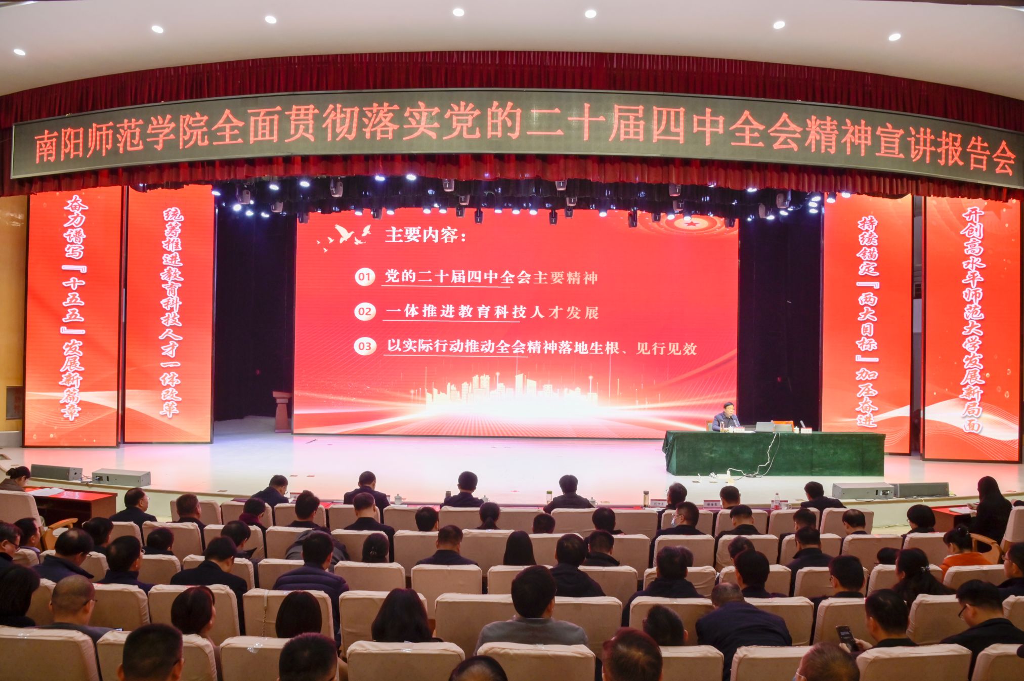 张宝锋从党的二十届四中全会主要精神和“十五五”规划的重要部署,以及加快高水平科技自立自强,引领发展新质生产力,一体推进教育科技人才发展和全面推进党的二十届四中全会精神在我校落地生根、见行见效三个方面展开宣讲。一是深刻认识党的二十届四中全会的重大意义和“十五五”时期重要战略部署,充分肯定党的二十届三中全会以来和“十四五”期间我国各项事业发展取得的历史性成就,准确把握“十五五”时期党和国家事业发展所处历史方位,深入分析当前国家发展环境面临的深刻复杂变化,对未来五年作出顶层设计和战略擘画。二是准确把握“十五五”时期高等教育的基本定位、新形势新要求和改革发展的关键任务,为高校进一步全面深化改革,加快推进各项事业高质量发展指路引航。三是要牢牢把握“十五五”规划建议的重要部署,紧紧围绕学校第四次党代会提出的战略规划,聚焦“更名大学和博士学位授予单位”两大发展目标,坚持“做强师范、做实应用”的发展理念,全力做好“十四五”规划收官冲刺,科学谋划我校“十五五”发展规划,奋力开创“十五五”时期学校各项事业高质量发展新局面。要坚持党的全面领导,为实现“十五五”时期发展目标提供坚强保证;坚定做强师范,建强教师队伍,持续擦亮师范办学底色特色,全面落实强师强教主体责任;坚持做实应用,匹配市场需求,深化产教融合,发展有基础、有条件的应用学科和应用研究,赋能新质生产力,服务区域经济社会高质量发展;坚持塑造优势,持续深化“以水为魂、三色嵌入”人才培养模式改革,建强优势特色骨干学科,深入推进“院办校”改革,朝着加快建成师范根基深厚、应用特色鲜明的高水平师范大学而努力奋斗。