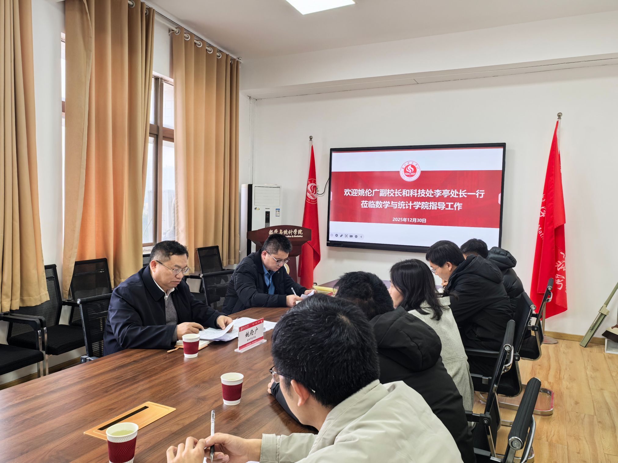本网讯(王鹏飞 虎大力 图/文)12月30日,副校长姚伦广带领科技处负责人赴数学与统计学院,就河南省应用数学中心建设及国家自然科学基金申报工作开展专题调研。