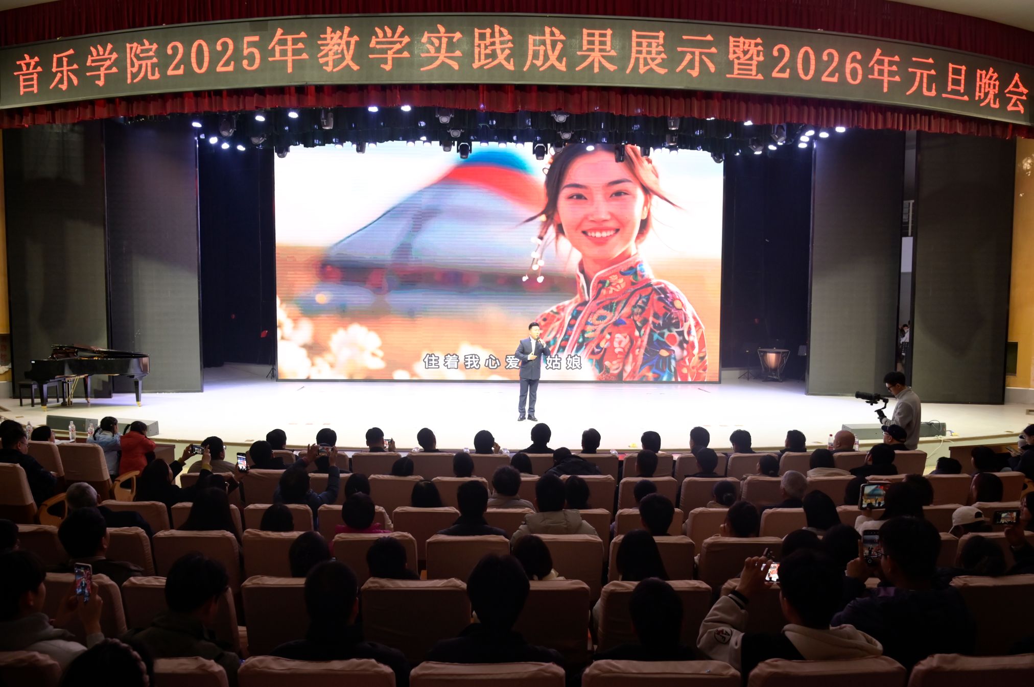 本网讯(张塘林/文 阮子涵 孙茹丽/图)12月30日晚,音乐学院在音乐厅举办“同心筑梦庆元旦 三色育人谱华章”——2025年教学实践成果展示暨2026年元旦晚会。校纪委书记、监察专员刘守勇,副校长刘金江出席,内乡县衙博物馆、南阳天鹅湖山乡剧院、我校相关单位负责同志以及音乐学院师生齐聚一堂共庆佳节。