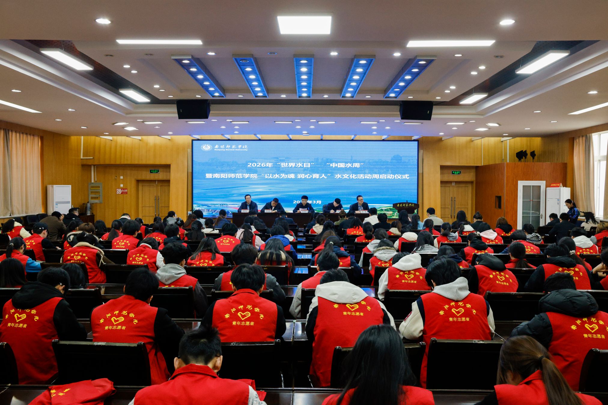 党委宣传部常务副部长付中欣宣读《关于举办2026年“世界水日”“中国水周”暨南阳师范学院“以水为魂 润心育人”水文化活动周的通知》。水资源与现代农业学院教师代表刘少博、生命科学学院学生代表排日扎提·艾则孜分别发言。
