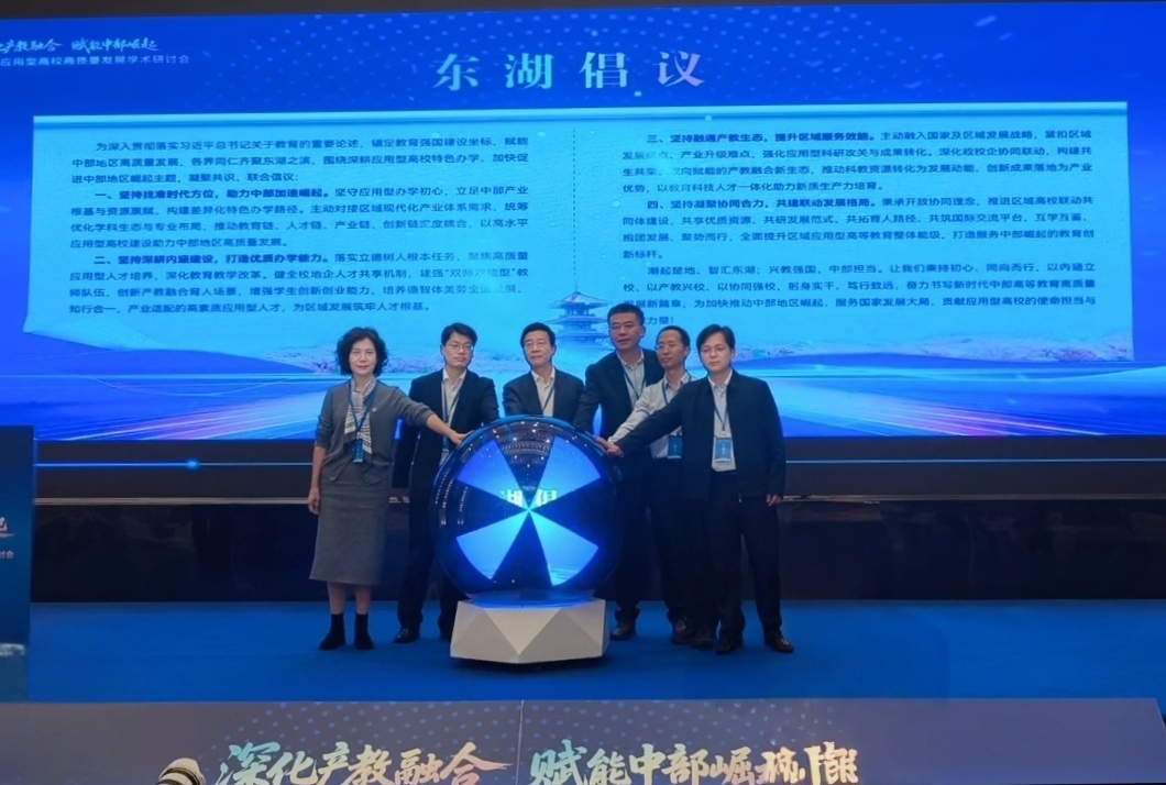 研讨会汇聚湖北、河南、安徽、山西、江西、湖南等中部六省43所高校专家学者,张宝锋作为河南省高校代表上台参加“东湖倡议”活动。倡议提出:坚持找准时代方位,助力中部加速崛起;坚持深耕内涵建设,打造优质办学能力;坚持融通产教生态,提升区域服务效能;坚持凝聚协同合力,共建联动发展格局。倡议呼吁中部地区应用型高校以教育链、人才链对接产业链、创新链,打造服务中部崛起的教育创新标杆。