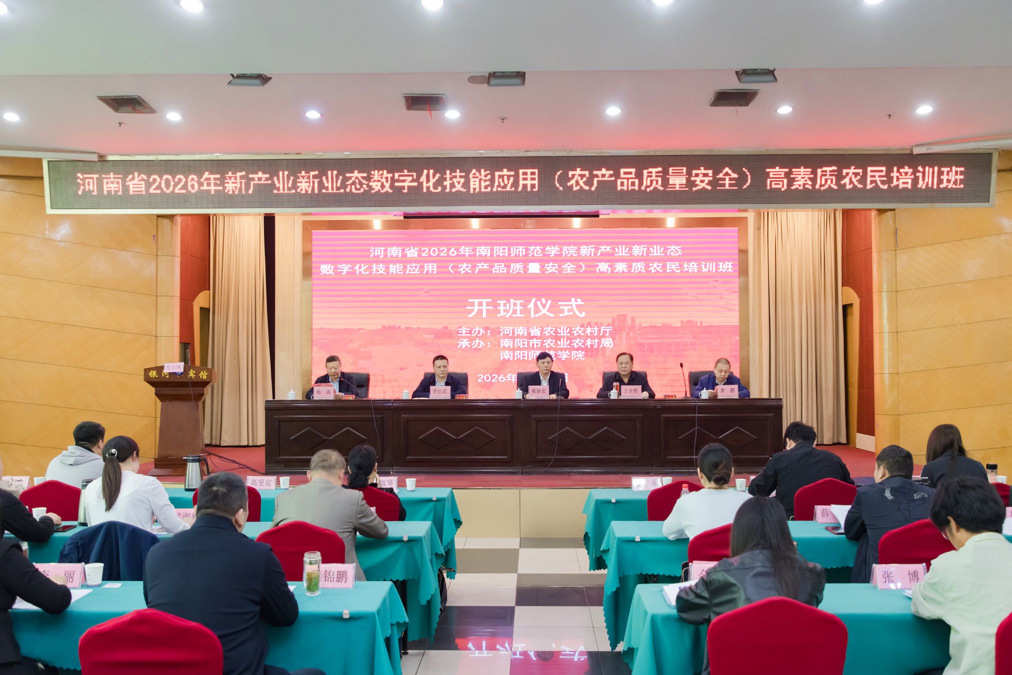 本网讯(通讯员 贾殿勇 图/文)4月16日上午,由河南省农业农村厅主办,南阳师范学院、南阳市农业农村局承办的“河南省2026年南阳师范学院新产业新业态数字化技能应用(农产品质量安全)高素质农民培训班”开班仪式在南阳市银河宾馆举行。副校长熊新忠、南阳市农业农村局四级调研员王全胜出席,校友工作办公室、水资源与现代农业学院负责同志等出席仪式,仪式由水资源与现代农业学院正处级组织员杨涛主持。