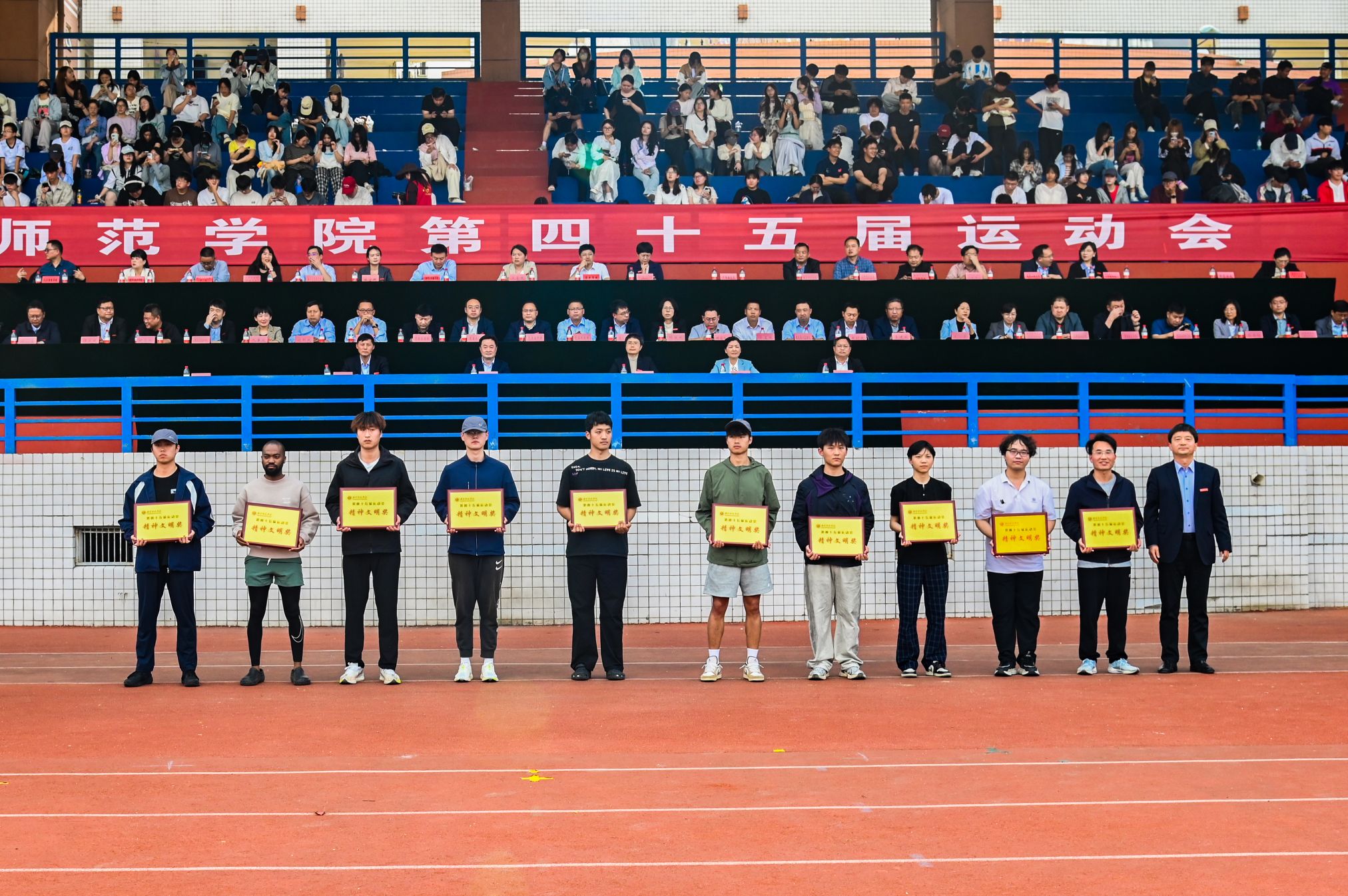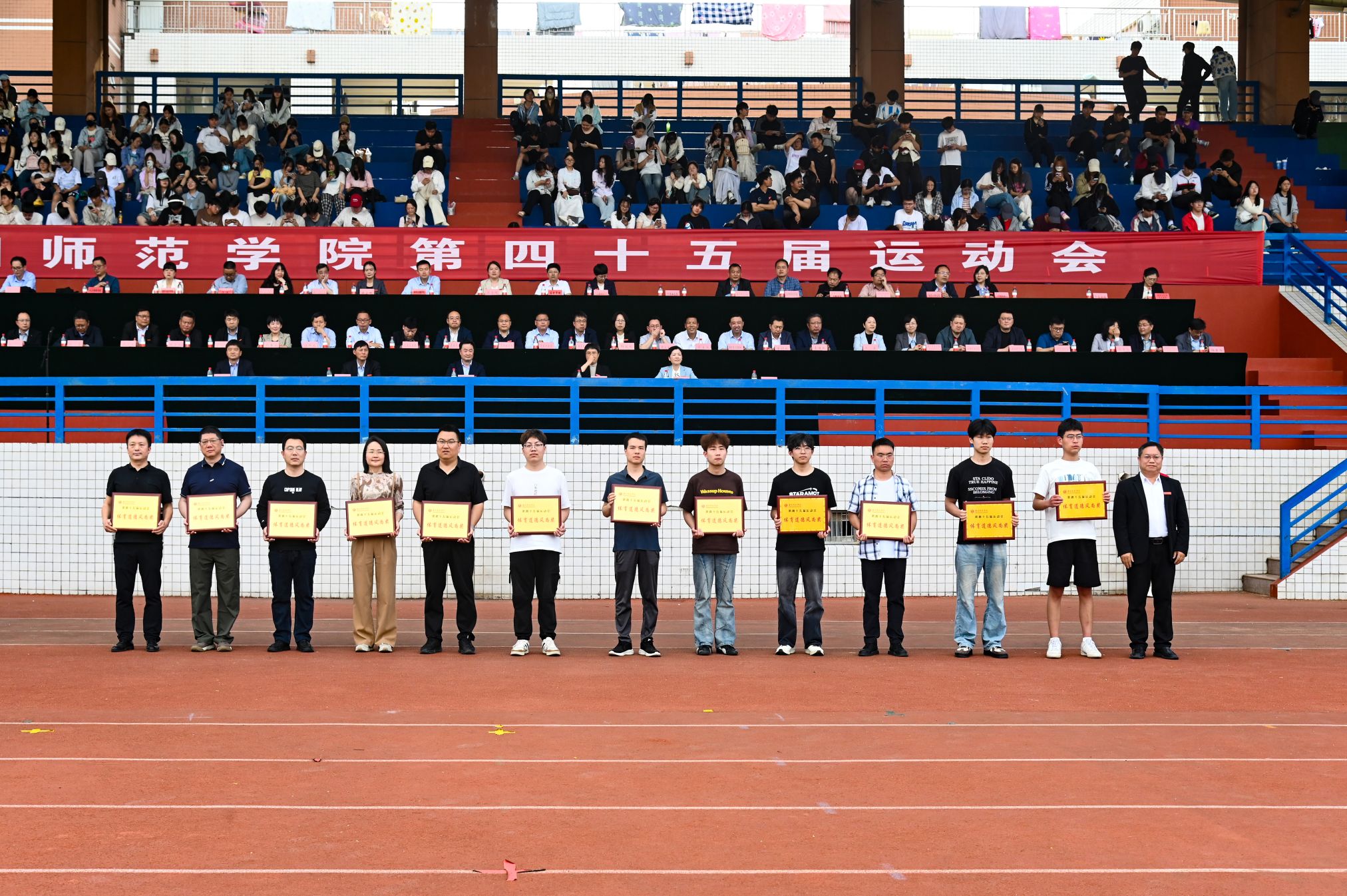 赛事主管、体育学院院长刘宗豪宣布南阳师范学院第四十五届运动会比赛成绩。