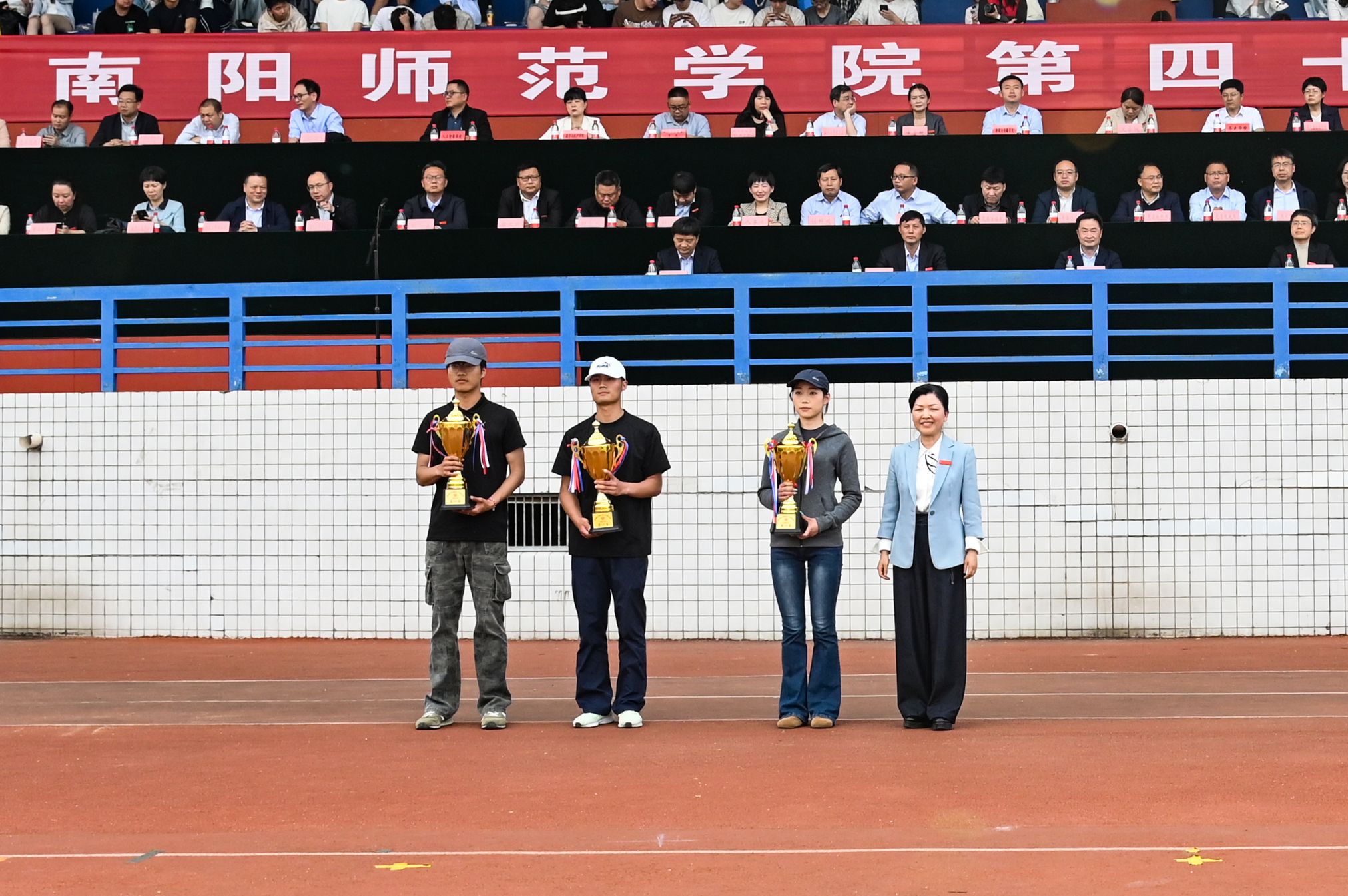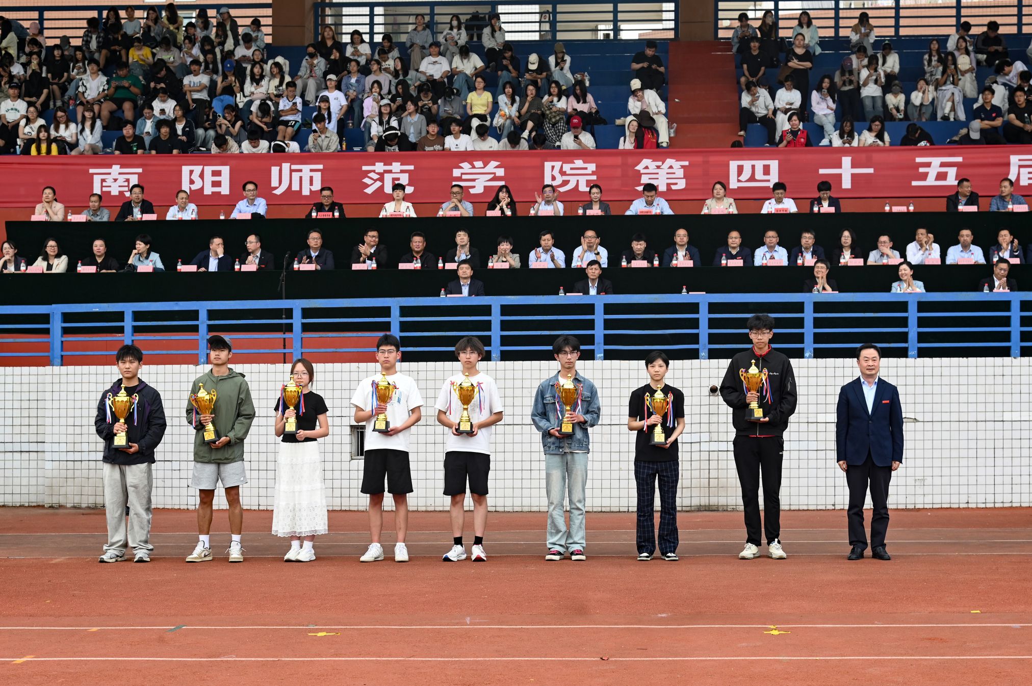 本网讯(杨眉/文 孙宏运 闫丽颖 王梁仪 阮子涵/图)4月17日下午,南阳师范学院第四十五届运动会闭幕式在中区田径场举行。校领导罗永松、孟静雅、熊新忠、王岩、刘金江、姚伦广出席,组委会成员、各部门负责人和各运动员代表参加。